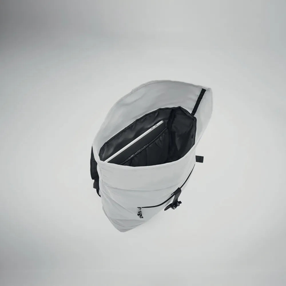 De rolltop opening maakt het mogelijk om het volume van de tas aan te passen aan de inhoud. Door de bovenkant op te rollen en stevig af te sluiten, blijven laptop en andere waardevolle spullen goed beschermd.