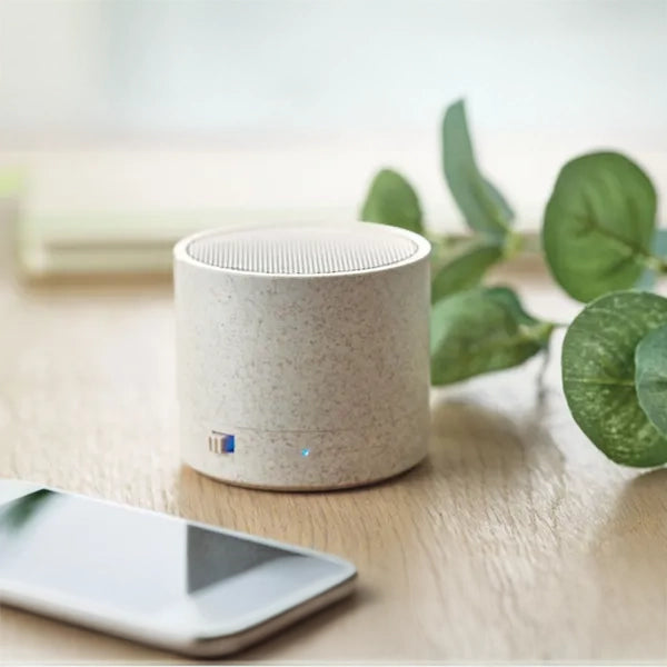 Deze 5.1 draadloze speaker combineert een moderne uitstraling met duurzame materialen. Gemaakt van 35% tarwestro en 50% ABS is deze speaker een milieubewust relatiegeschenk. De LED-indicator, compacte vorm en stabiele Bluetooth-connectie maken dit een praktisch én opvallend promotieartikel dat eenvoudig te bedrukken is met jouw logo.