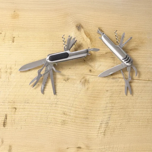 De tool bevat onder meer een mes, schaar, vijl, blikopener en andere handige functies. Dankzij het slimme ontwerp heb je meerdere gereedschappen binnen handbereik, zonder extra ruimte in te nemen.
