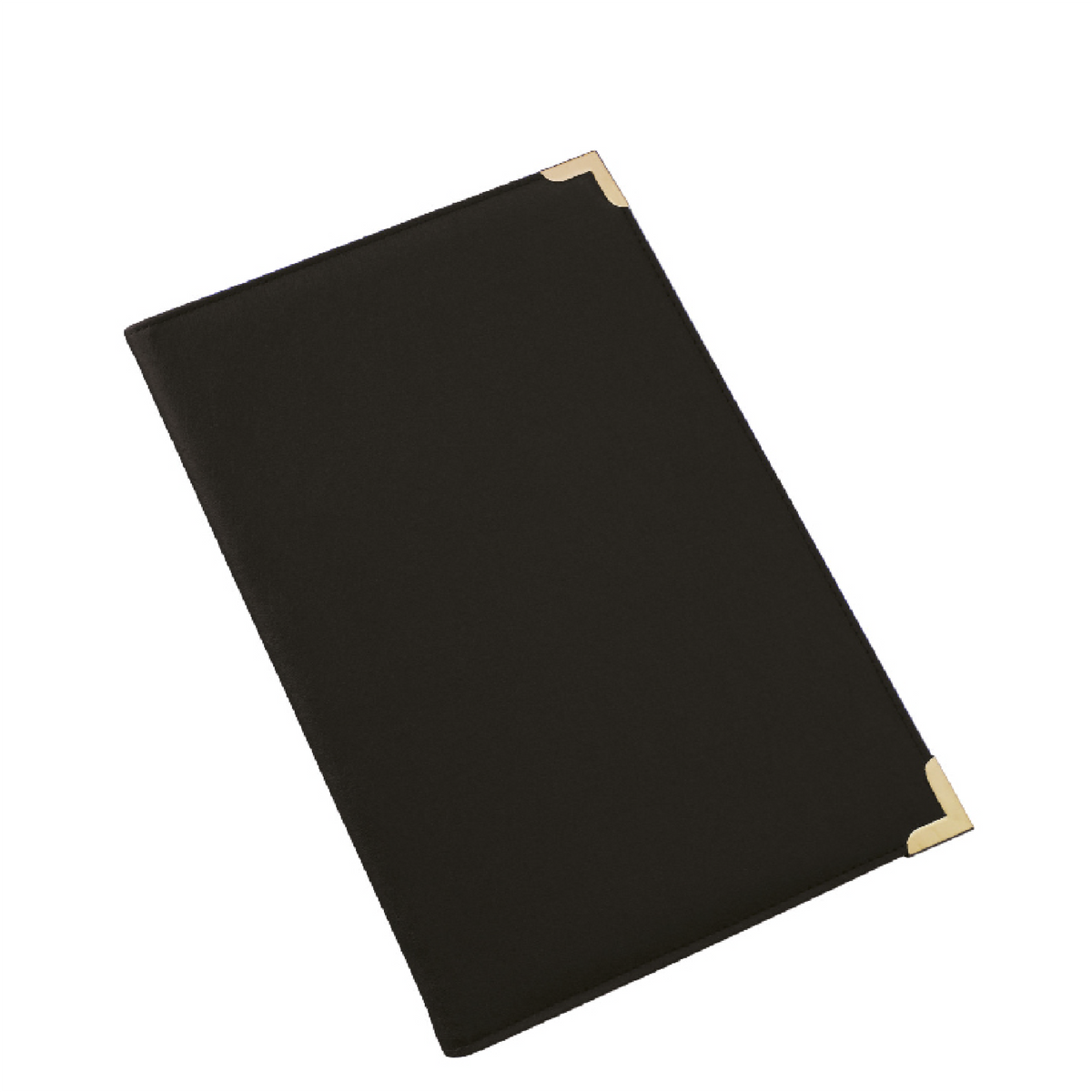 Deze stijlvolle documentmap is geschikt voor A4-formaat en uitgevoerd met goudkleurige metalen hoekbeschermers. Deze details geven de map niet alleen een luxe uitstraling, maar beschermen ook effectief tegen slijtage en beschadigingen aan de hoeken.