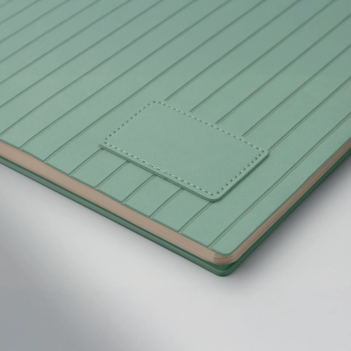 De geribbelde structuur van de kaft zorgt voor een moderne uitstraling en ligt prettig in de hand. Dankzij het compacte A5-formaat past het notitieboek eenvoudig in een tas of aktetas, waardoor het perfect is voor onderweg of op kantoor.