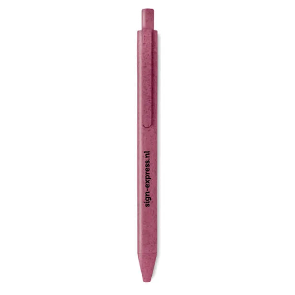 Deze balpen is vervaardigd uit een combinatie van 50% tarwestro en 50% ABS kunststof. Hiermee kies je voor een milieuvriendelijk alternatief dat bijdraagt aan het verminderen van plastic afval, zonder in te leveren op kwaliteit.