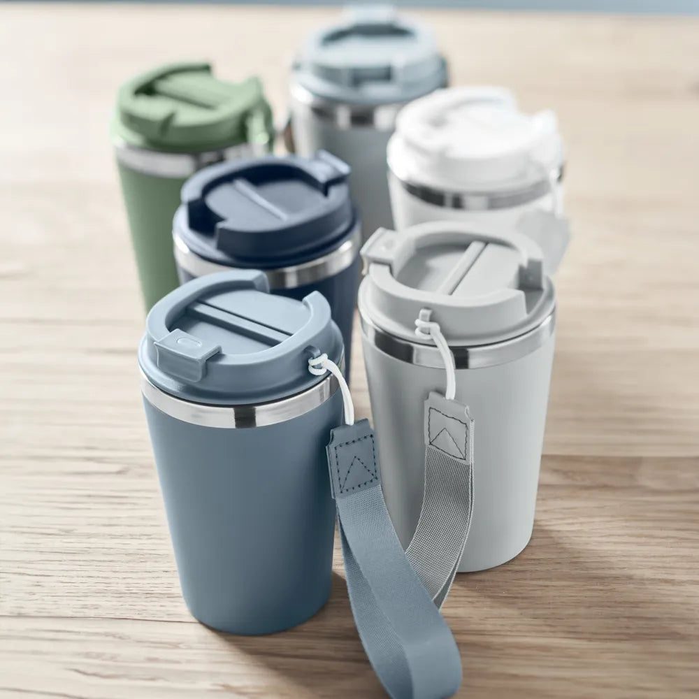 Deze dubbelwandige herbruikbare koffiebeker is een duurzame oplossing voor dagelijks gebruik en bewuste merkpromotie. De beker is vervaardigd uit gerecycled roestvrij staal en combineert een lange levensduur met een professionele uitstraling. Geschikt voor kantoren, evenementen en promotiecampagnes waar herbruikbaarheid centraal staat.