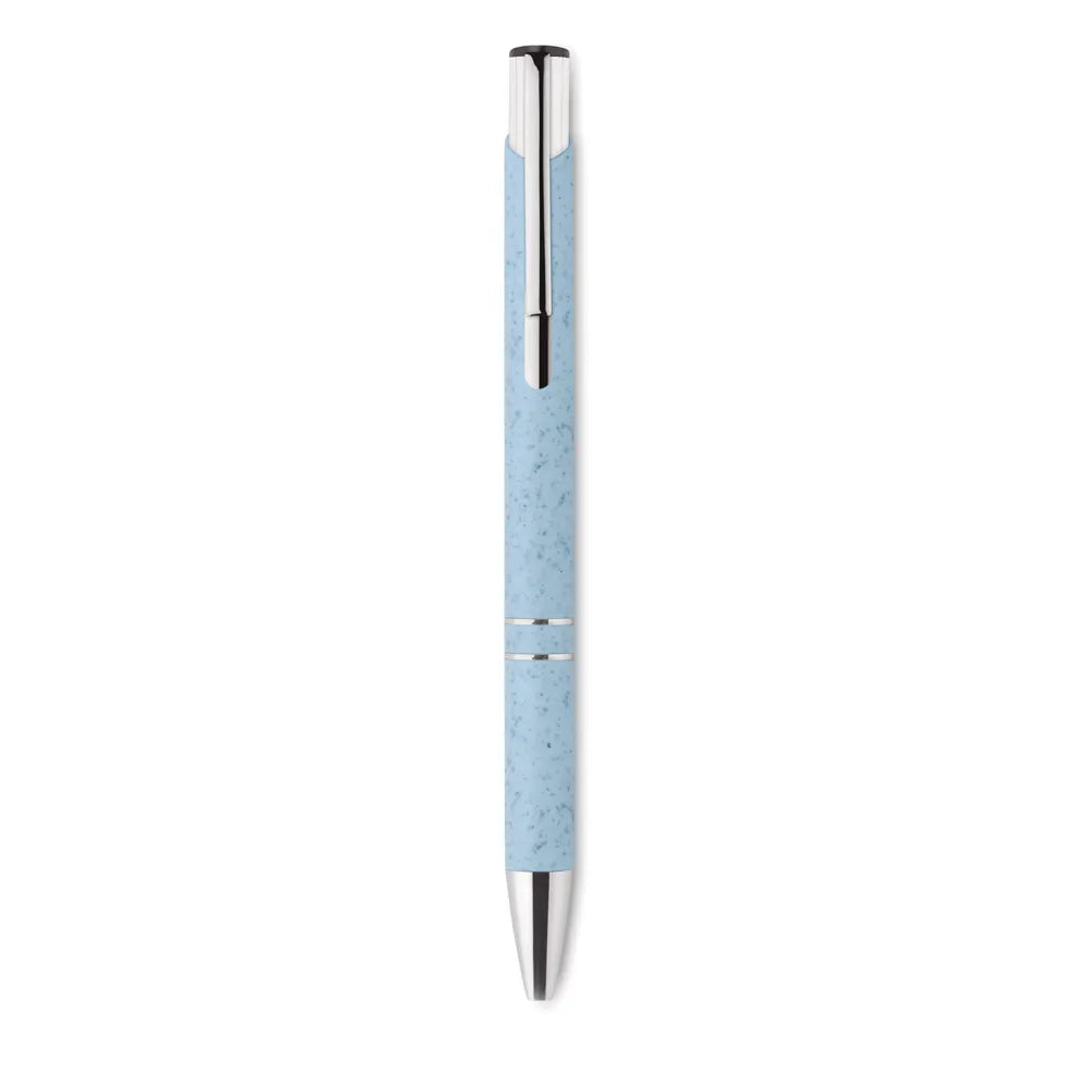 Deze stijlvolle balpen is niet alleen praktisch in gebruik, maar ook een bewuste keuze. De behuizing bestaat voor 50% uit tarwestro en 50% uit ABS-materiaal. Daarmee is deze pen een duurzamer alternatief voor volledig plastic pennen. De zilverkleurige accenten zorgen voor een professionele uitstraling, terwijl het drukmechanisme zorgt voor gebruiksgemak. De pen schrijft met blauwe inkt, wat standaard is voor zakelijk gebruik.