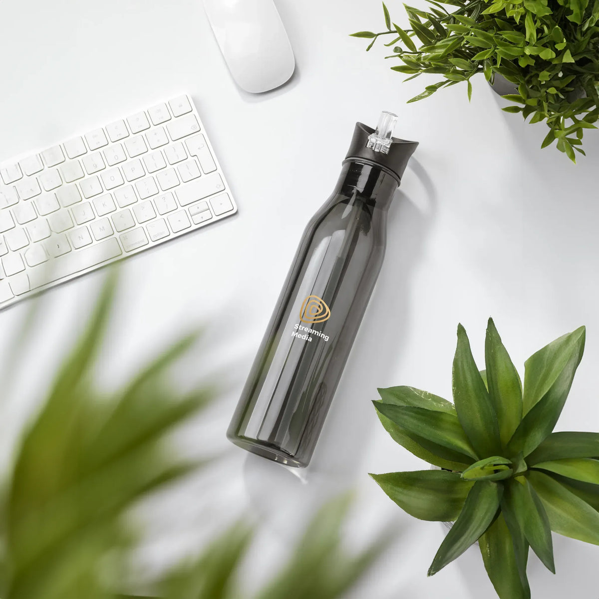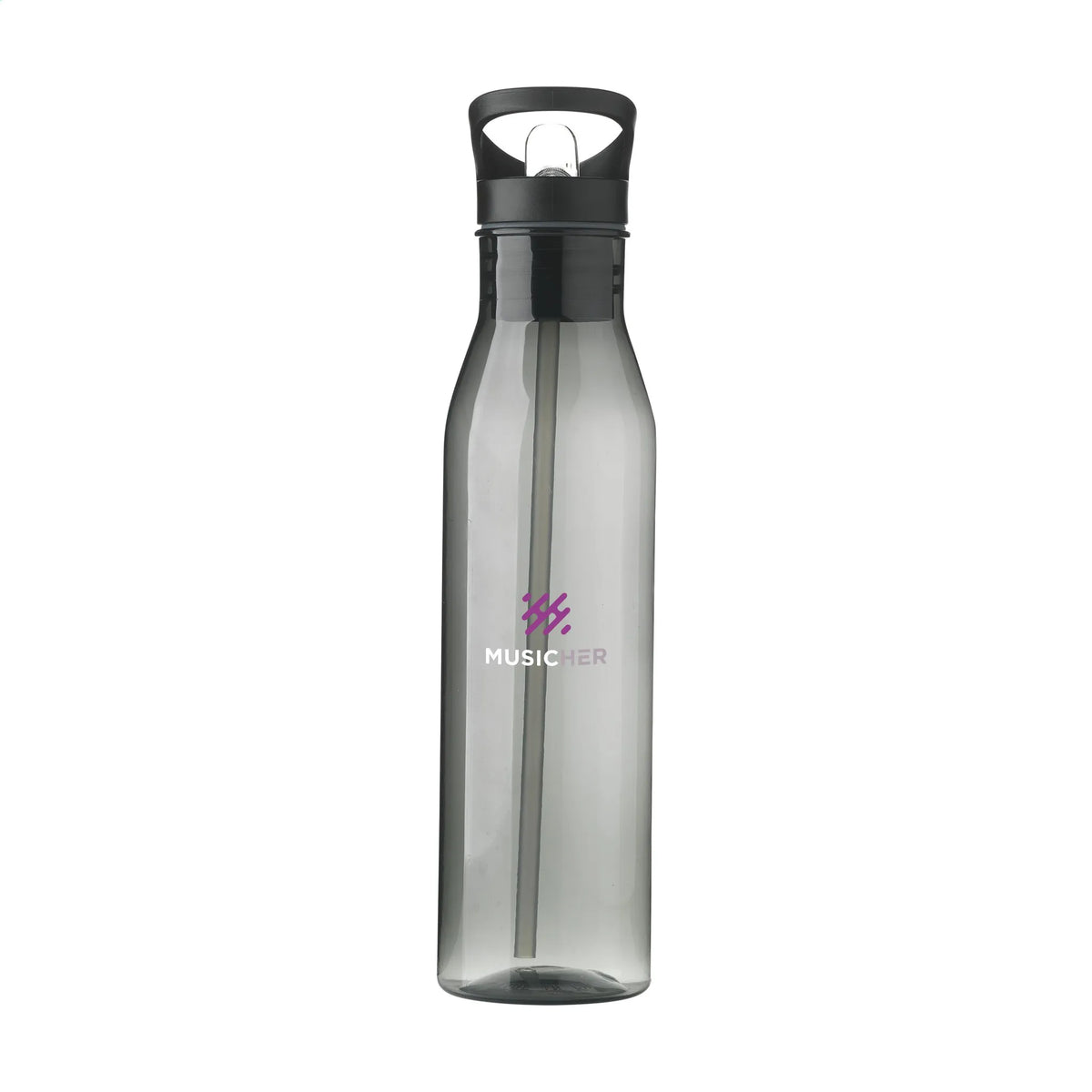 Duurzame RPET Waterfles 720 ml met Mondstuk en Rietje - Zwart