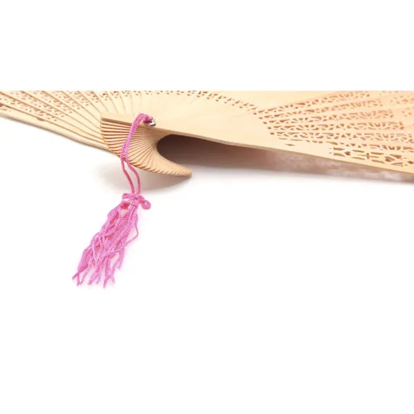Deze waaier is vervaardigd uit zorgvuldig geselecteerd hout, wat zorgt voor een stevige structuur en langdurig gebruik. De gestanste ribben geven de waaier een luxueuze uitstraling en maken hem tot een opvallend accessoire dat jarenlang meegaat.