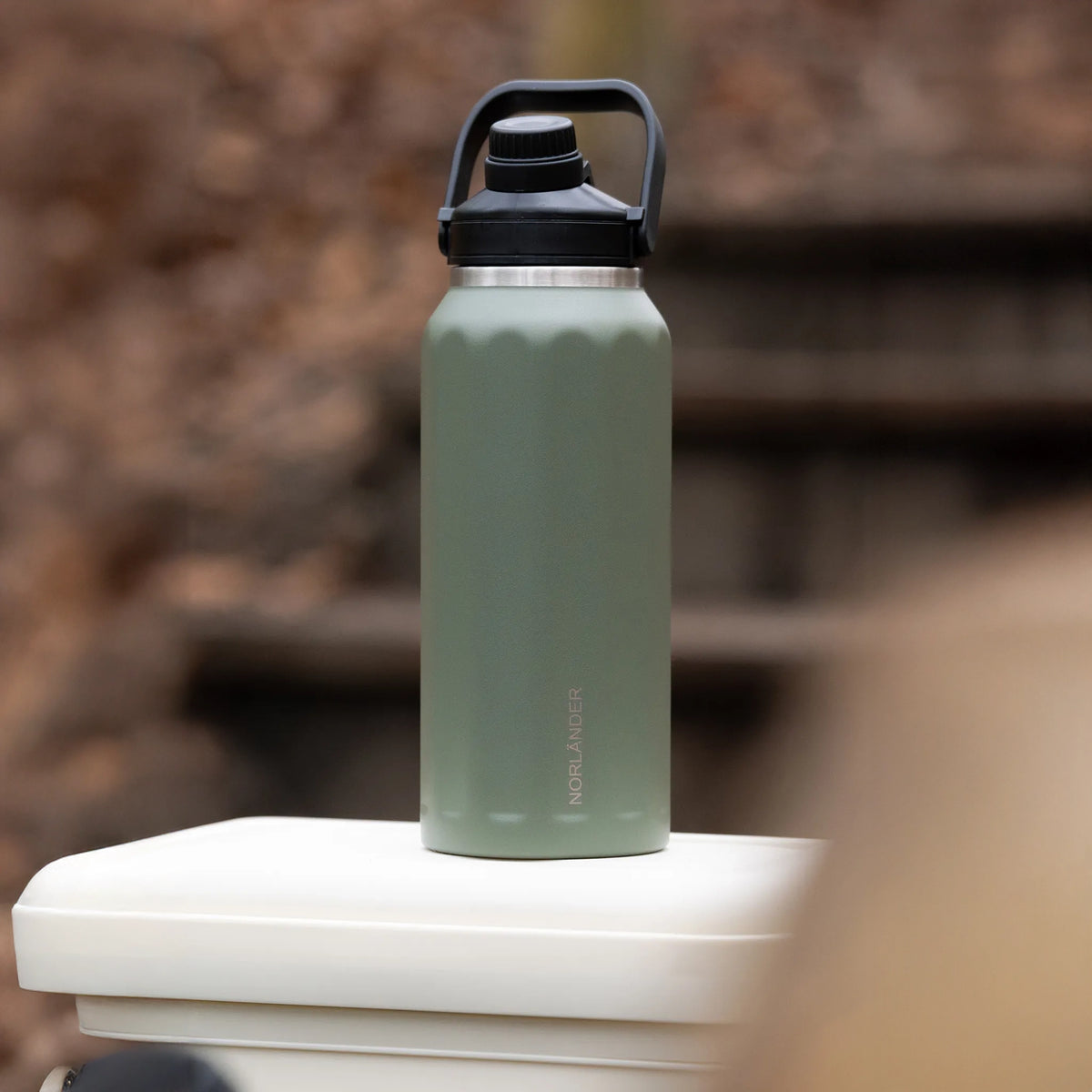 Extra grote dubbelwandige thermofles met draaghengsel – personaliseerbaar met lasergravering - Groen