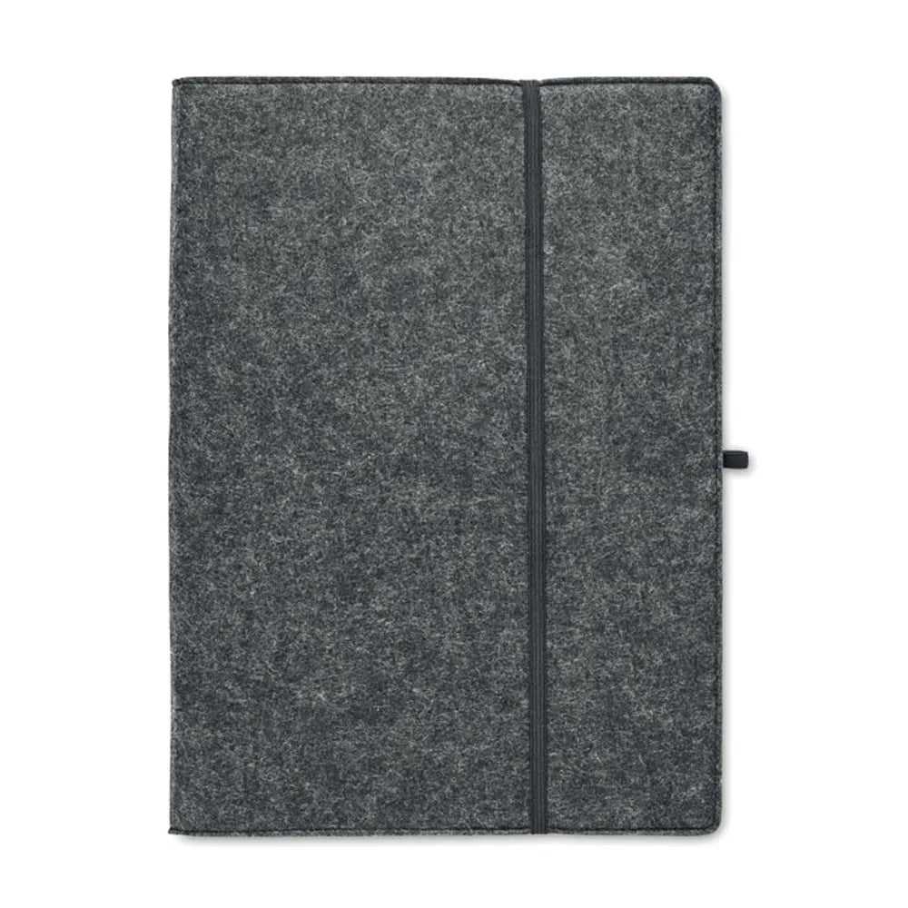 Deze stijlvolle map is vervaardigd uit RPET vilt – een materiaal afkomstig van gerecyclede PET-flessen. Een milieuvriendelijke oplossing die stevig en licht in gebruik is, met een moderne uitstraling.