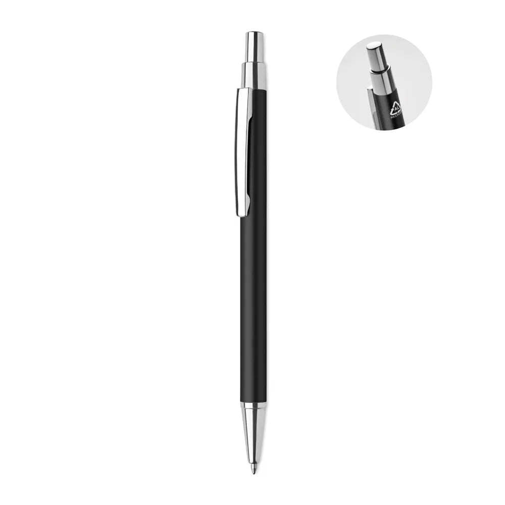 Deze balpen combineert klassiek kantoordesign met moderne duurzaamheid. Gemaakt van gerecycled aluminium, biedt deze pen niet alleen een verfijnde look, maar ook een verantwoorde materiaalkeuze. Tot 50% van het gebruikte materiaal is gerecycled, zonder in te leveren op stijl of kwaliteit.