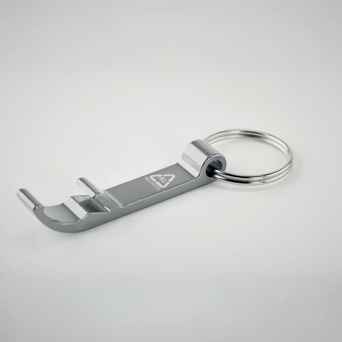 Deze sleutelhanger flesopener is gemaakt van gerecycled aluminium (≥50%) en heeft een glanzende afwerking die zorgt voor een luxe uitstraling. Een praktisch én duurzaam relatiegeschenk dat dagelijks gebruikt wordt en zo jouw merk telkens opnieuw onder de aandacht brengt.