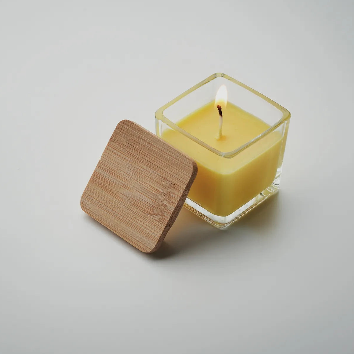 Geurkaars in Glazen Houder met Bamboe Deksel – Bedrukken met Logo