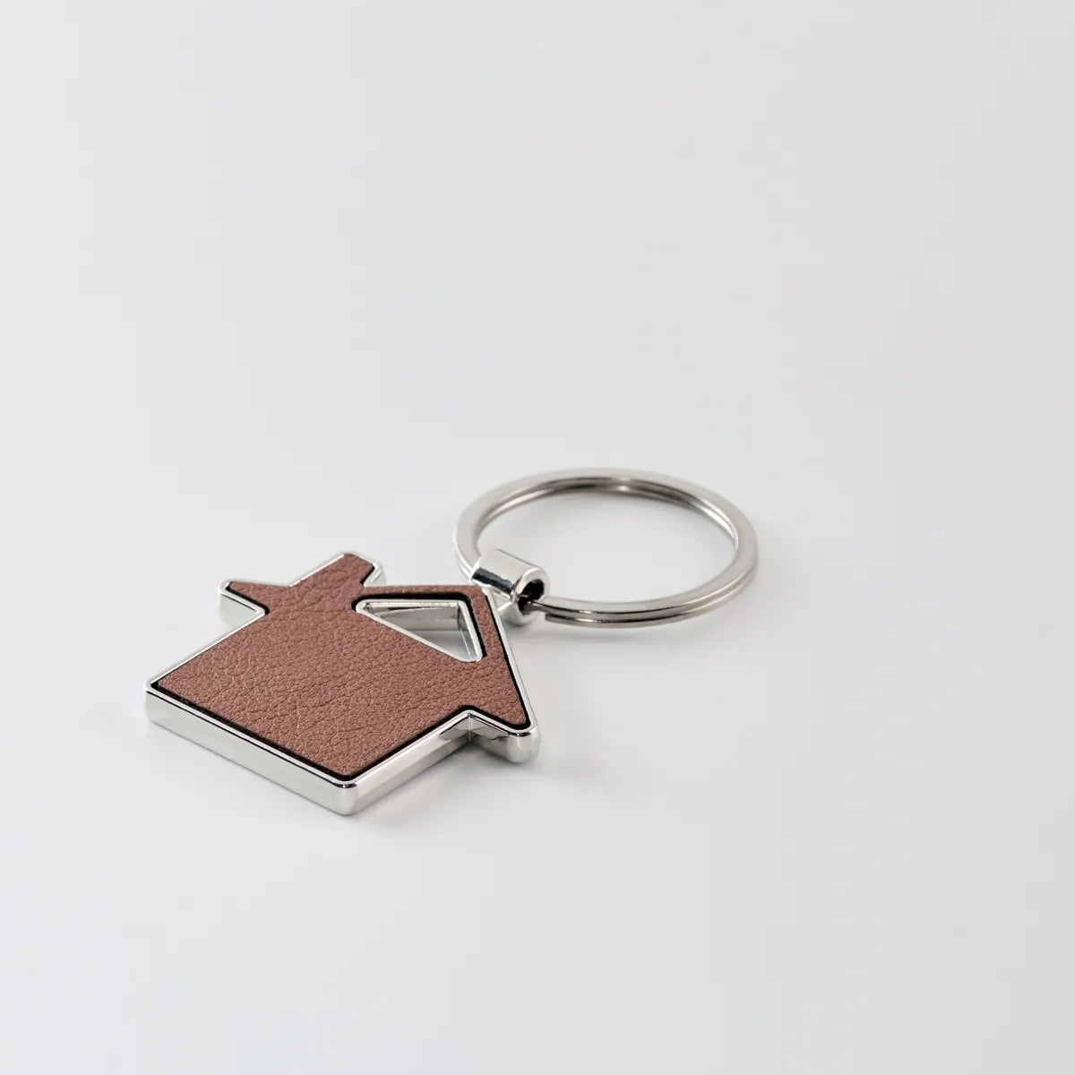 Huisvormige metalen sleutelhanger met gerecycled PU-leer