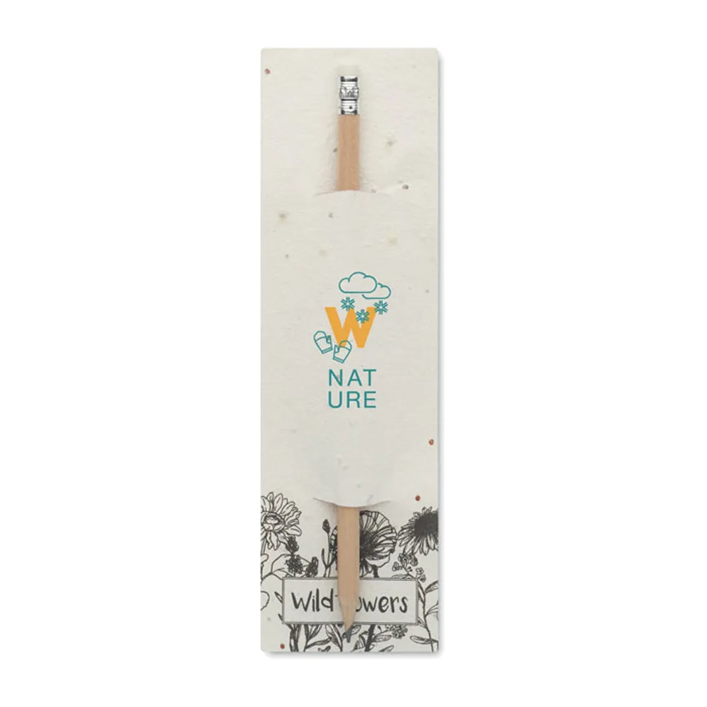 Combineer schrijven en zaaien met dit natuurlijke houten potlood, compleet met gum en verpakt in een milieuvriendelijk zakje van zaadpapier. Het perfecte groene relatiegeschenk voor elke duurzame boodschap.
