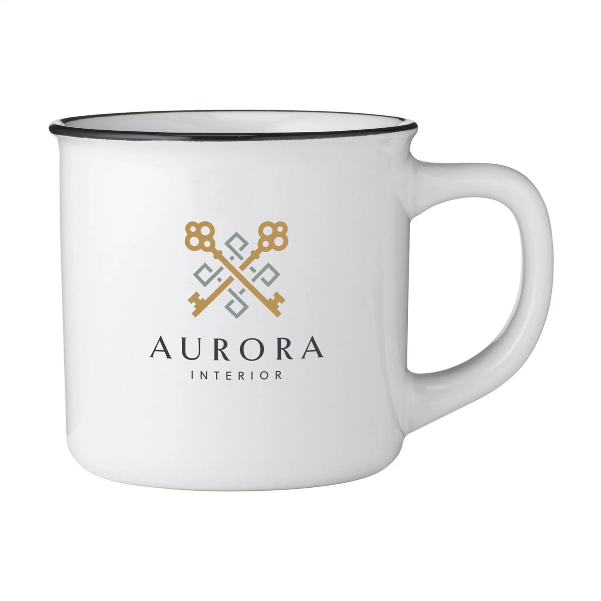 Deze keramische mok van 320 ml combineert klassieke retro-elementen met moderne functionaliteit. De nostalgische vormgeving maakt hem uniek en aantrekkelijk, terwijl het hoogwaardige keramiek zorgt voor een prettige drinkervaring. Een stijlvolle keuze voor thuis, op kantoor of als promotieartikel.