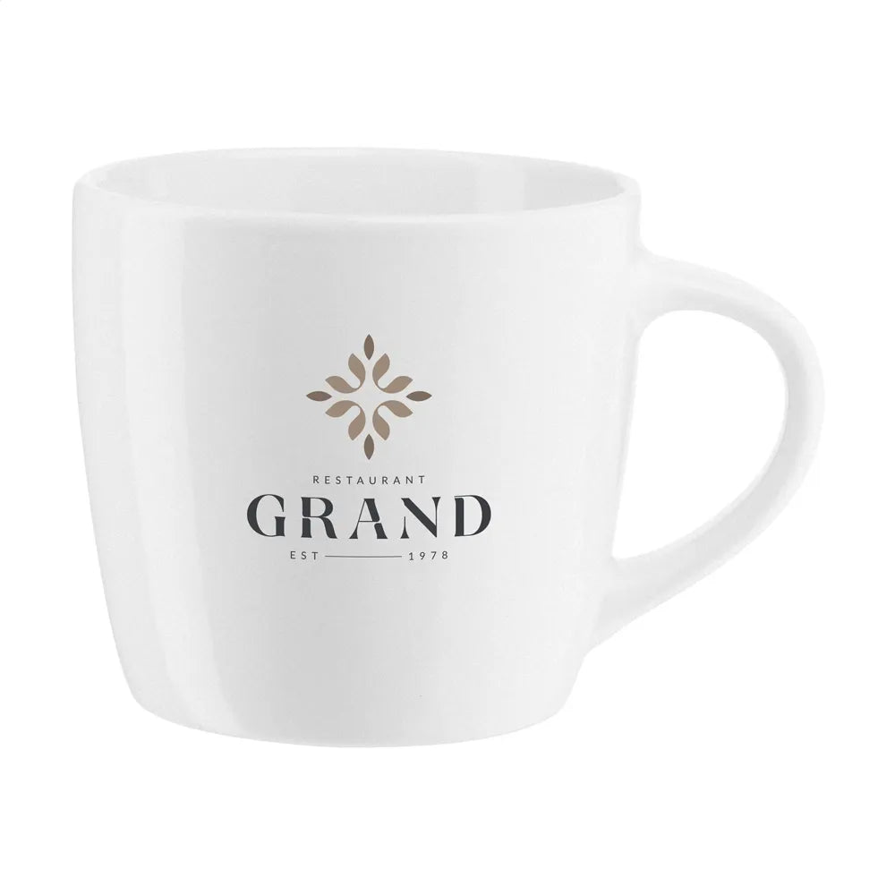 De mok heeft een eenvoudige, tijdloze uitstraling die moeiteloos past in iedere omgeving. Het gladde oppervlak is ideaal voor personalisatie met een logo of ontwerp. De witte kleur biedt een neutrale basis waarmee jouw opdruk goed tot zijn recht komt.