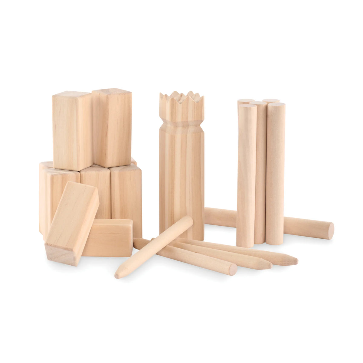 Het werpspel is vervaardigd uit dennenhout, wat zorgt voor een natuurlijke uitstraling en langdurig speelplezier. Het materiaal is licht van gewicht, maar toch stevig genoeg voor herhaald gebruik.