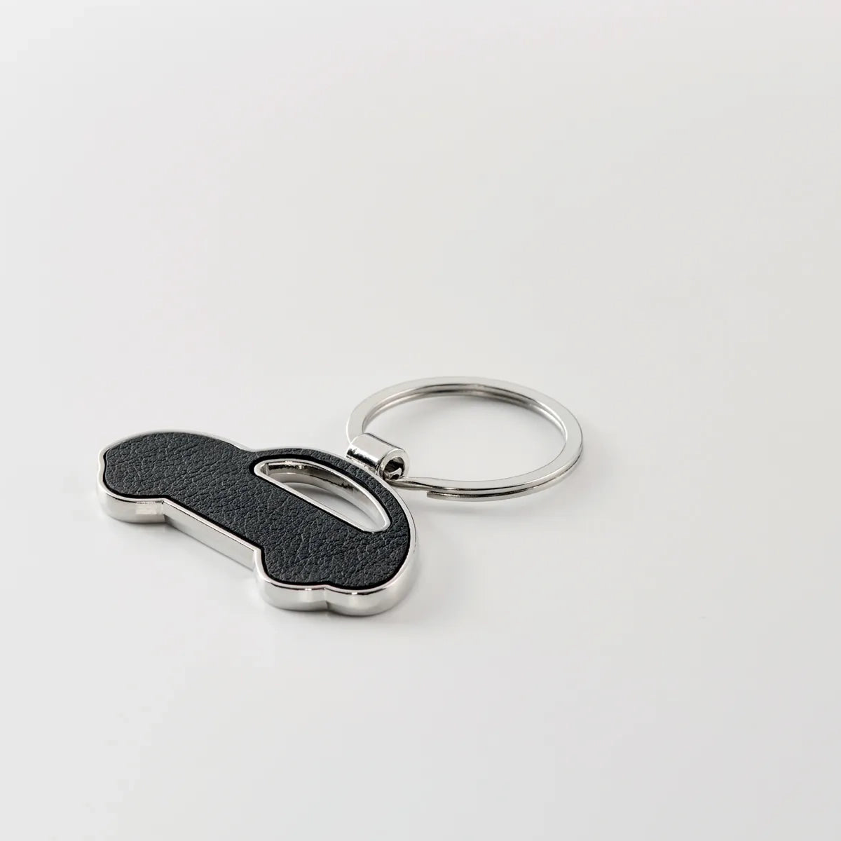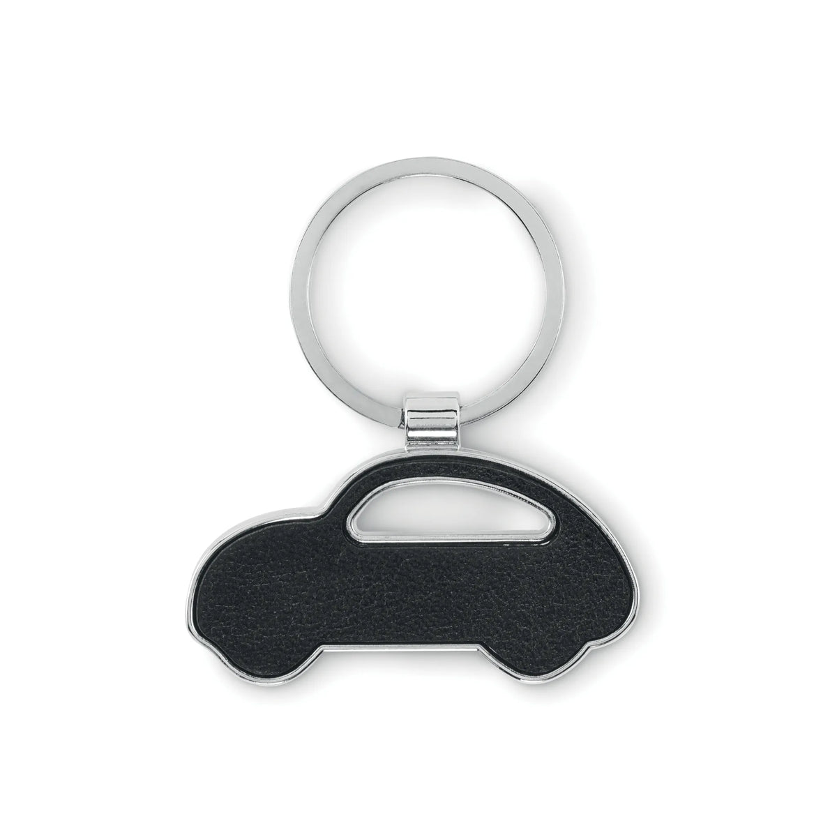 Deze metalen sleutelhanger in de vorm van een auto is afgewerkt met een stijlvol inlegstuk van gerecycled PU-leer. Een duurzaam en opvallend relatiegeschenk dat zowel robuust als elegant is. Perfect om dagelijks aan een sleutelbos te hangen en daarmee jouw merk zichtbaar te maken.