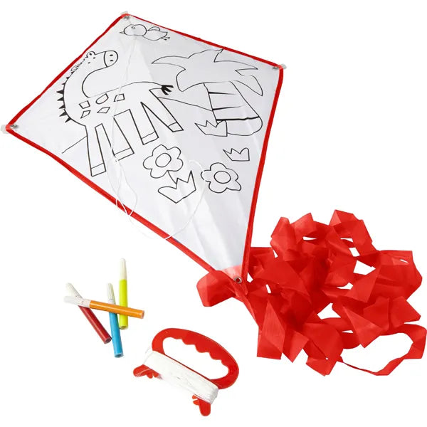 Polyester Vlieger om Zelf in te Kleuren – Inclusief 4 Viltstiften - Rood
