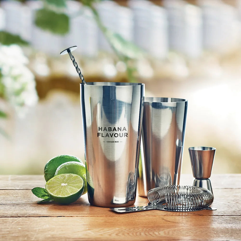 De set bevat alles wat je nodig hebt voor het maken van verfijnde cocktails: een shaker van 750 ml, een maatbeker van 30 ml, een zeef, een roerlepel en meer. Alle onderdelen zijn functioneel, duurzaam en eenvoudig te reinigen.