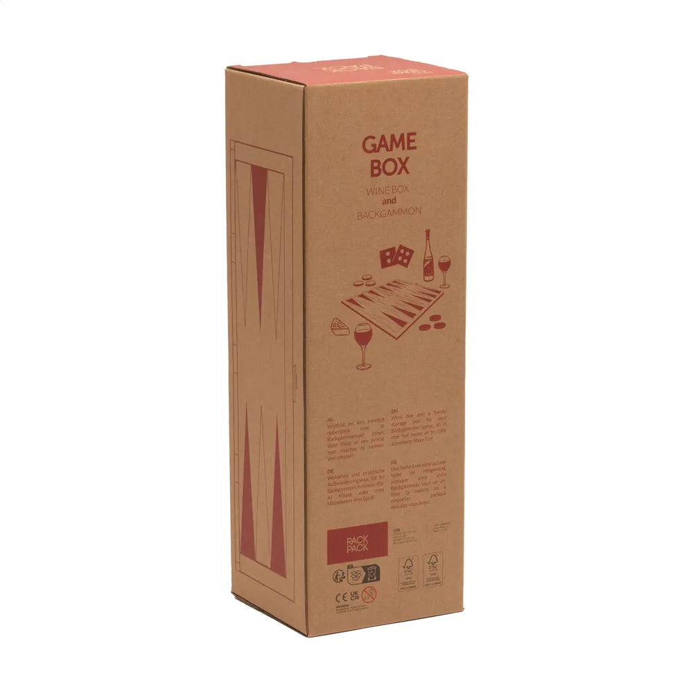 De Rackpack Gamebox Backgammon is een stijlvolle en multifunctionele geschenkverpakking die perfect is voor wijnliefhebbers én fans van bordspellen. Deze houten wijnkist transformeert in een compleet backgammonspel zodra je hem opent. Inclusief houten speelstukken en canvas opbergzak voor optimaal gebruiksgemak en beleving.