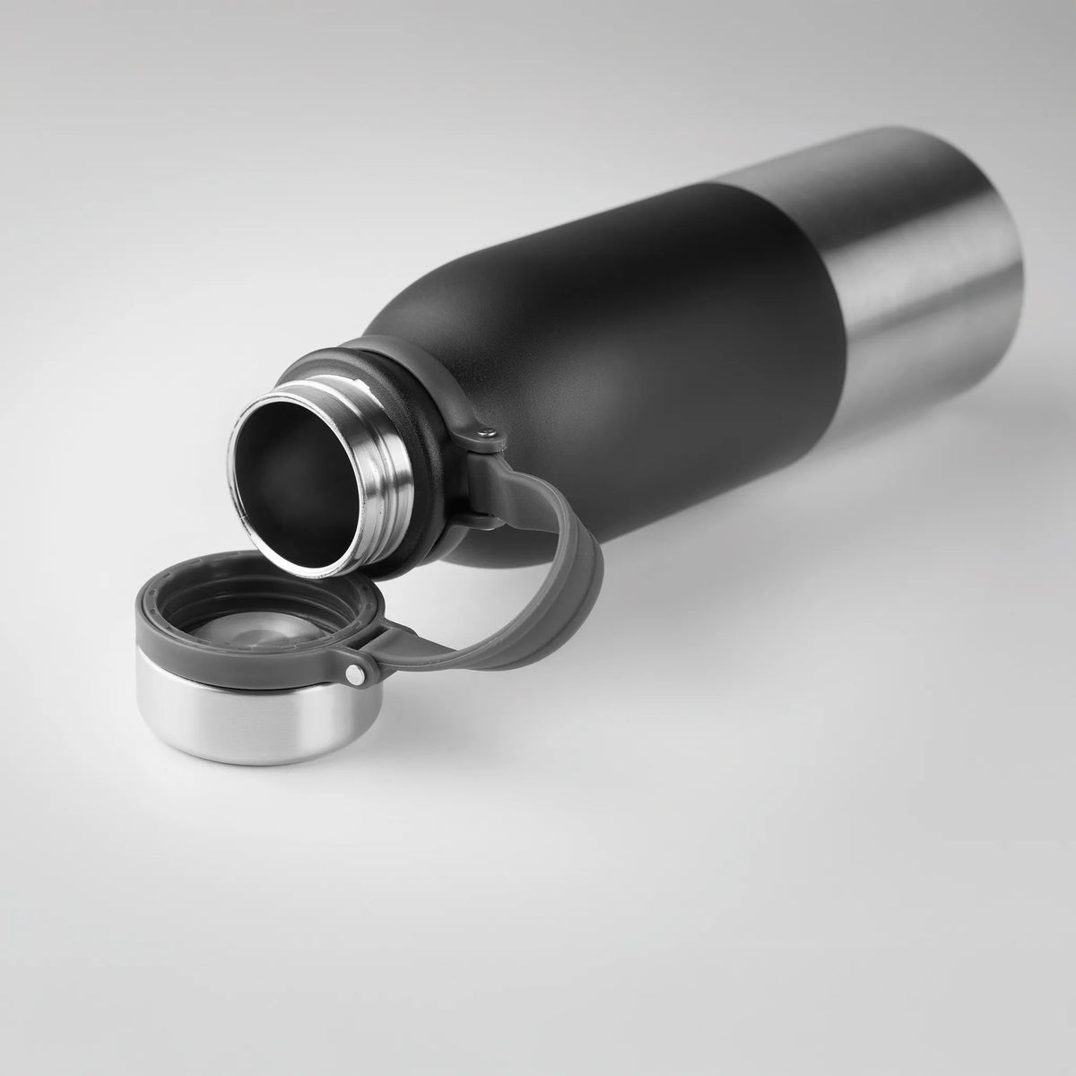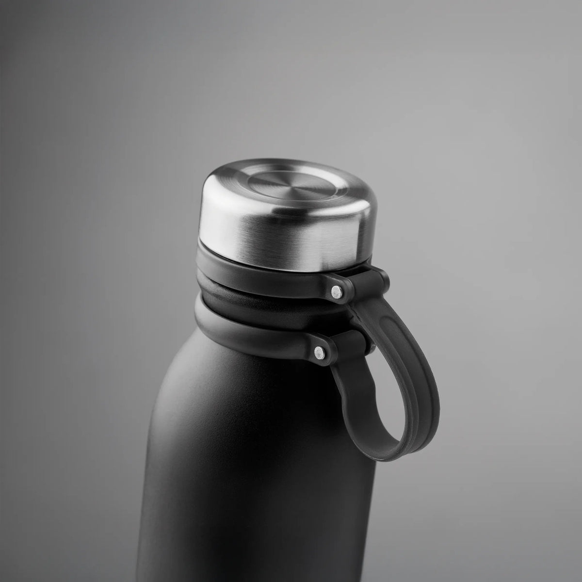 De brede siliconen ring rondom de fles zorgt voor een stabiele, antislip greep. Dit verhoogt het draagcomfort aanzienlijk, ook wanneer je onderweg bent of tijdens het sporten. De lekvrije dop is voorzien van een stevige draaglus, zodat je de fles gemakkelijk met je meedraagt of aan een tas bevestigt.