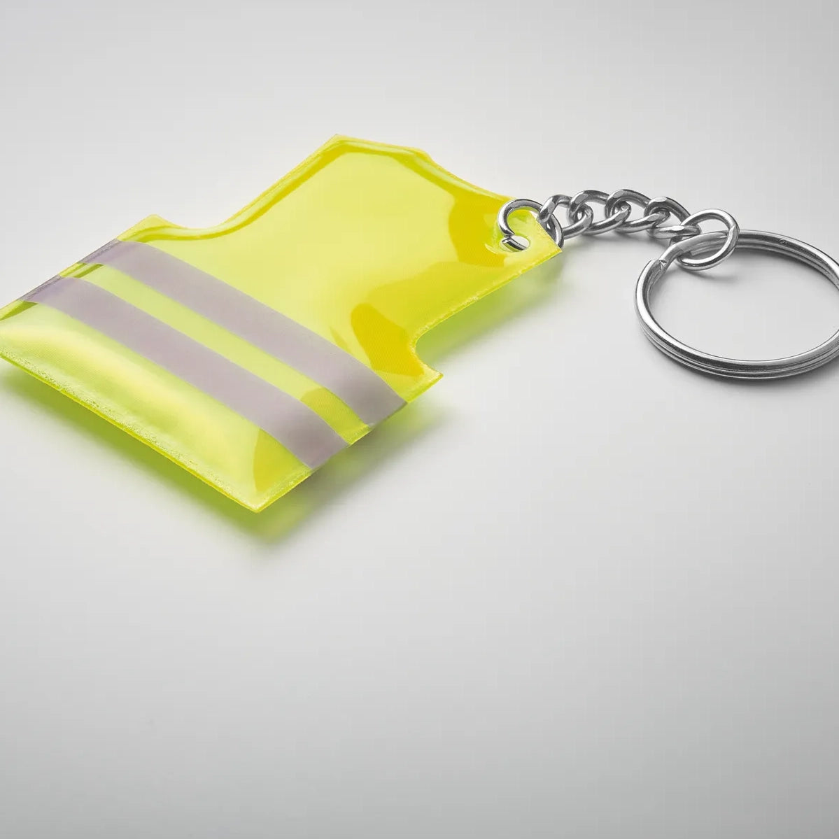 Deze reflecterende sleutelhanger in de vorm van een veiligheidsvest zorgt voor extra zichtbaarheid in het verkeer. Een ideale giveaway voor scholen, sportclubs of transportbedrijven.