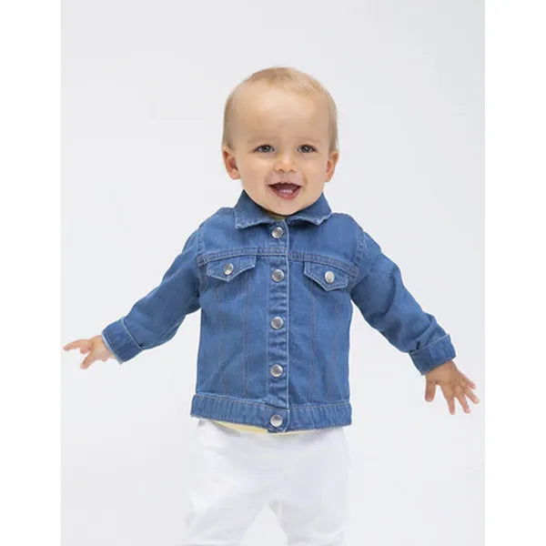 Drukknopen op de manchetten en verstelbare lusjes met drukknopen aan de achterkant zorgen voor een goede pasvorm. De effen voorkant en stiksels in jeansstijl geven het jasje een authentieke denim look, met voldoende ruimte voor personalisatie of bedrukking.