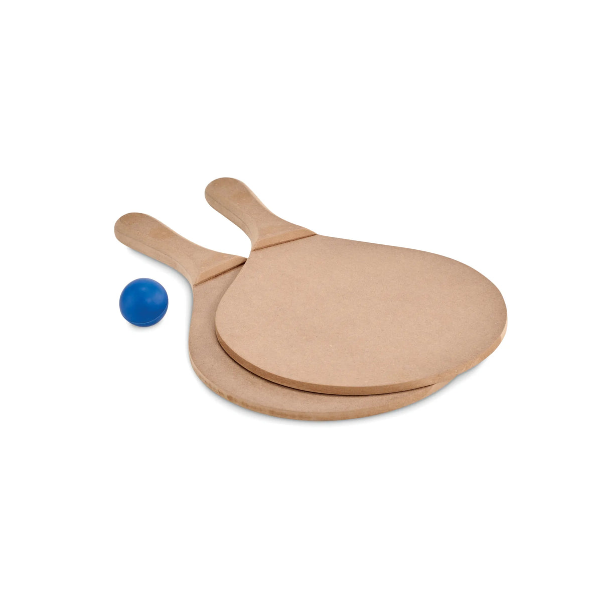 De twee peddels zijn gemaakt van MDF, wat zorgt voor een solide speelervaring en lange levensduur. Het materiaal is goed geschikt voor bedrukking, waardoor deze set een uitstekende keuze is voor promotioneel gebruik.
