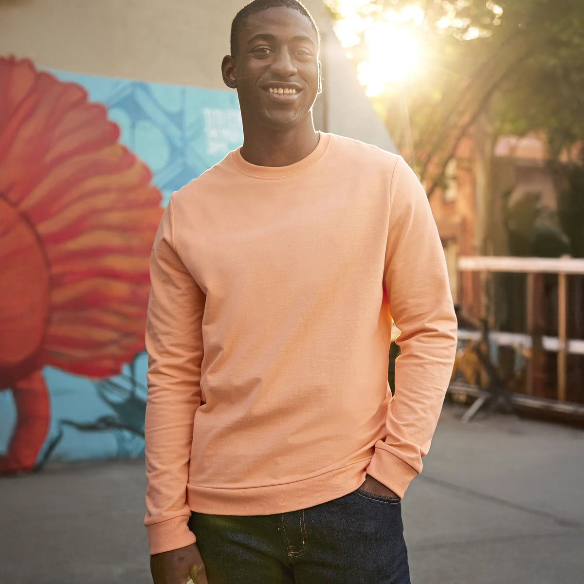 Het sweatshirt is uitgevoerd met een ronde hals, lange mouwen met elastische boorden en een comfortabele French Terry binnenkant (niet geruwd). De zijnaden zorgen voor een goede pasvorm en de binnenzijde van de nek is netjes afgewerkt met een single jersey halfmoon. Dankzij de voorgekrompen stof blijft het kledingstuk ook na meerdere wasbeurten mooi in model.